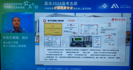 安徽省计算机学会、安徽省人工智能学会联合省内31所高校计算机学院,针对2024安徽新高考综合改革,开展了一场公益性专业招生线上宣讲活动,直播观看达4万+人次。6月27日下午17:30—18:00,8858cc永利8858cc永利院长朱昌杰宣讲8858cc永利计算机科学与技术、人工智能、数据科学与大数据技术、软件工程、电子信息工程、通信工程等专业招生情况。