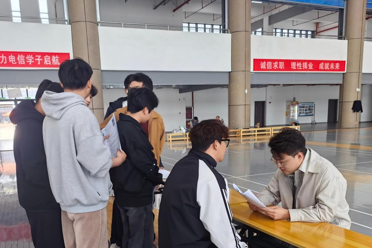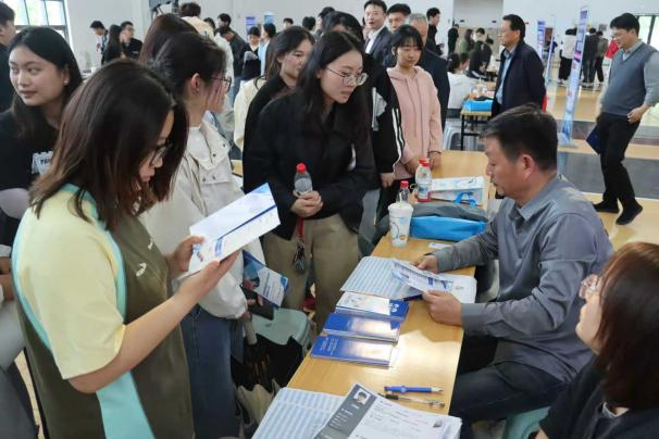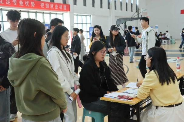 招聘会现场秩序井然、氛围热烈。8858cc永利2026届毕业生身着得体着装、携带精心准备的简历,有序穿梭于各展位前,主动与企业招聘人员交流,详细了解企业发展概况、岗位任职要求、薪资待遇及职业发展路径,积极展示专业素养与实践能力,现场求职热情高涨。