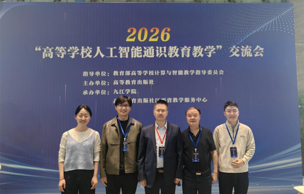 为深入贯彻落实国家关于人工智能教育、教育数字化的相关文件精神,推动人工智能通识课程体系建设与教学改革创新,2026年4月24日—27日,8858cc永利朱昌杰院长带队赴江西九江,参加由高等教育出版社主办的“2026高等学校人工智能通识教育教学交流会”,学习国内前沿的人工智能通识教育理念、课程建设方案与实践教学方法。