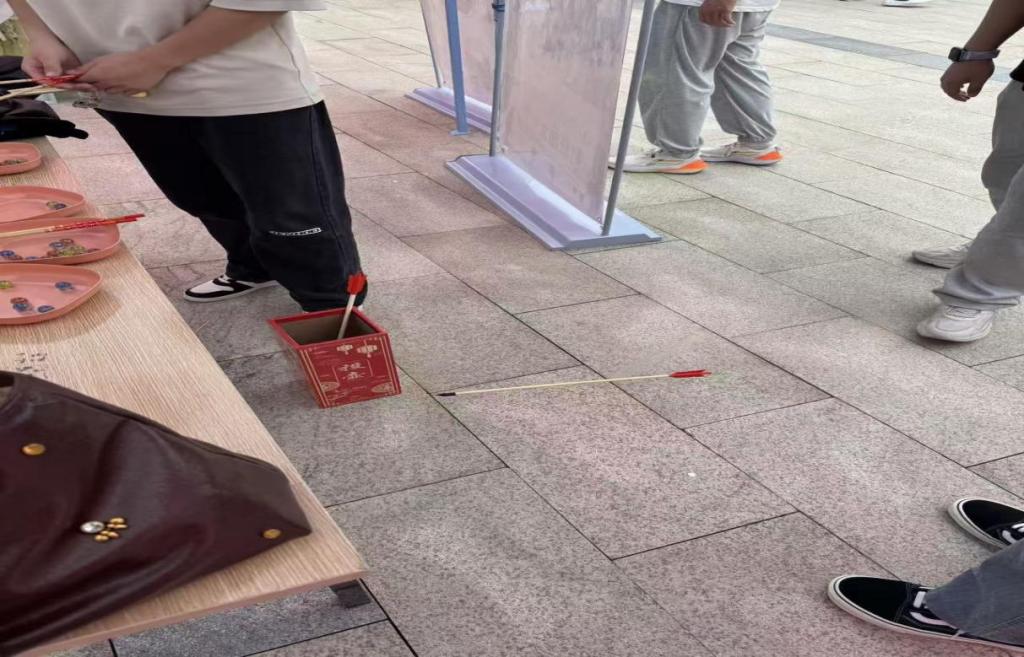 夕阳西下,活动也即将落幕。不少学生仍聚在场边交流心得,有人调侃“下次吃饭要用筷子练手速”,也有人认真记录投壶的历史知识。